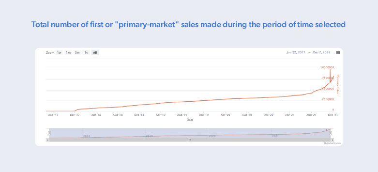 - Erstverkäufe oder Verkäufe auf dem „Primärmarkt” während des ausgewählten Zeitraums (was auf ein starkes Angebot und eine starke Nachfrage hindeutet)