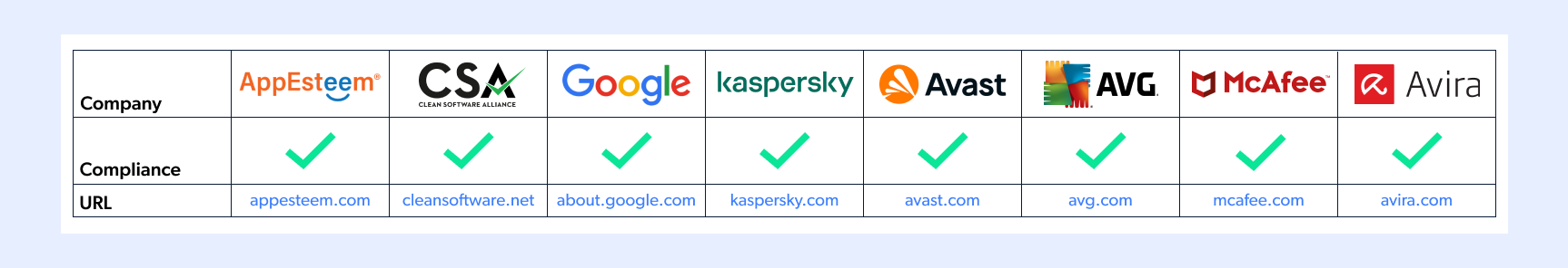 McAfee/GOOGLE/Avast/AVG/Avira