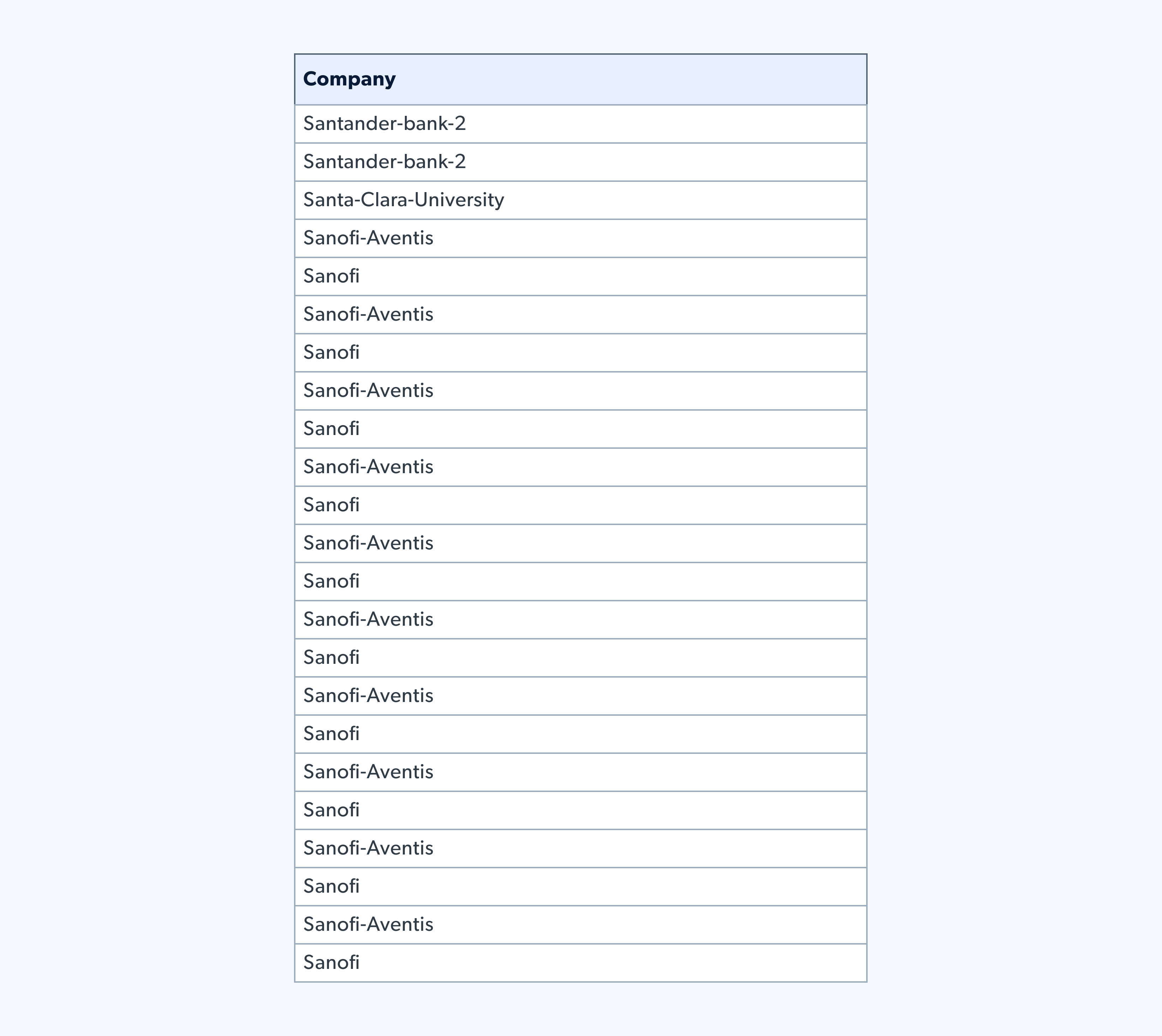 Aber wie sieht es mit bestimmten Unternehmen aus, wer sind die großen Investoren? Als wir uns an die Analyse der Daten machten, stießen wir erneut auf ein Problem: Es gab mehrere Versionen desselben Unternehmens.