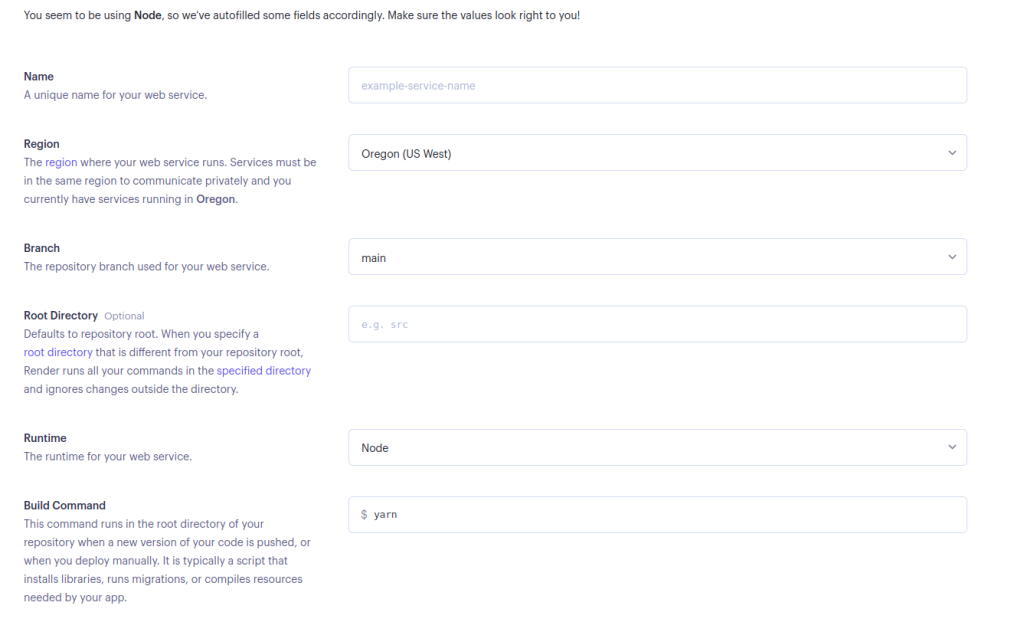 Dies bietet einen Befehl zum Starten des Express-Webservers, sobald er bei Render gehostet wird.