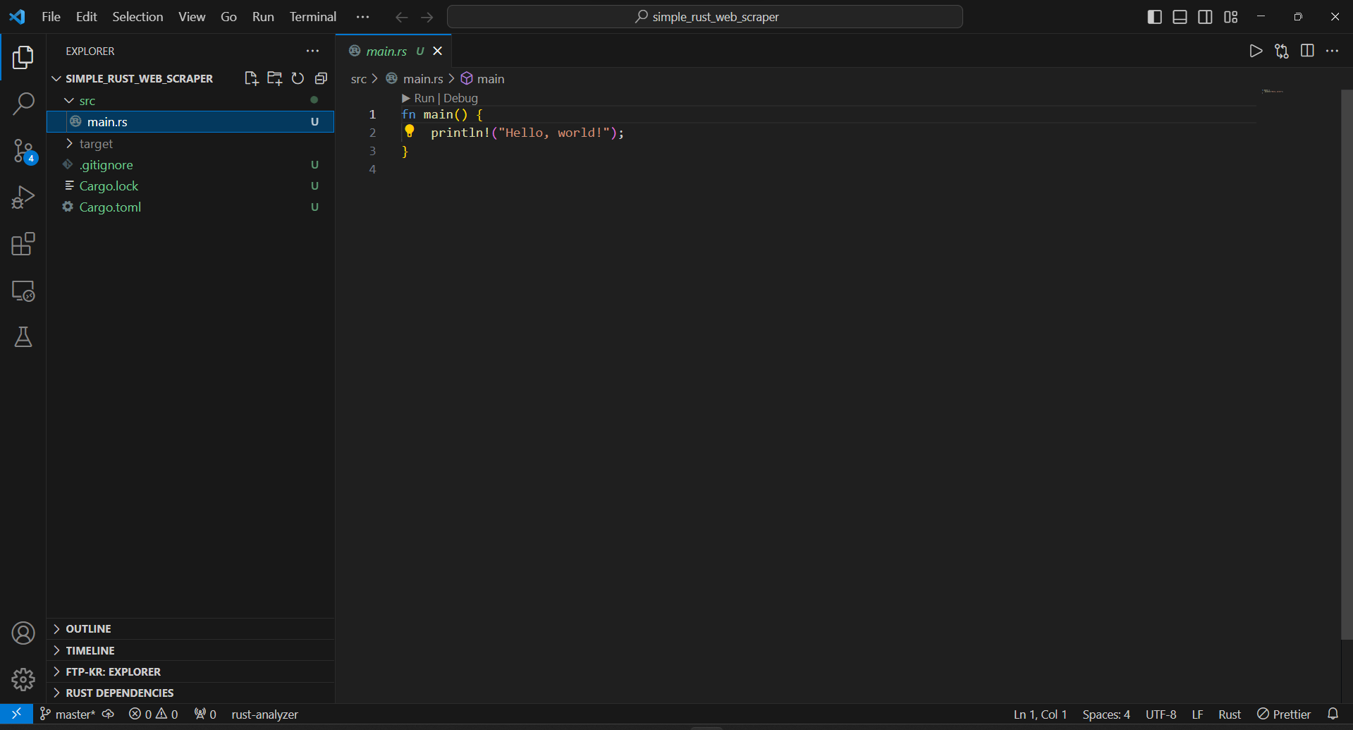 Öffnen Sie simple_rust_web_scraper in Ihrer Rust-IDE. Visual Studio Code mit der Rust-Erweiterung ist beispielsweise ideal dafür geeignet: