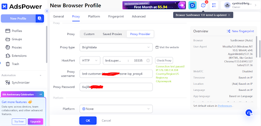 Nutzen Sie das unbegrenzte Potenzial von AdsPower in Kombination mit Bright Data-Proxys. Erleben Sie eine Welt voller Möglichkeiten und heben Sie Ihr Surferlebnis auf ein neues Niveau.