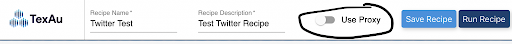 Sie können ganz einfach einen Proxy mit jedem TexAu Spice verwenden. Aktivieren Sie einfach den Schalter „Proxy verwenden” und wählen Sie den gewünschten Proxy aus Ihrer Liste aus.