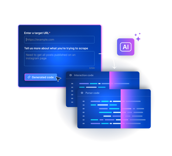 Skizzieren Sie Ihre Datenanforderungen und lassen Sie Scraper Studio in wenigen Minuten selbstheilende Scraping-APIs generieren – für so viele Domains, wie Sie benötigen.