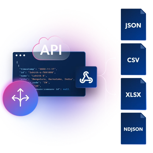 Erhalten Sie strukturierte Daten in JSON-, NDJSON- oder CSV-Dateien per Webhook- oder API-Lieferung.